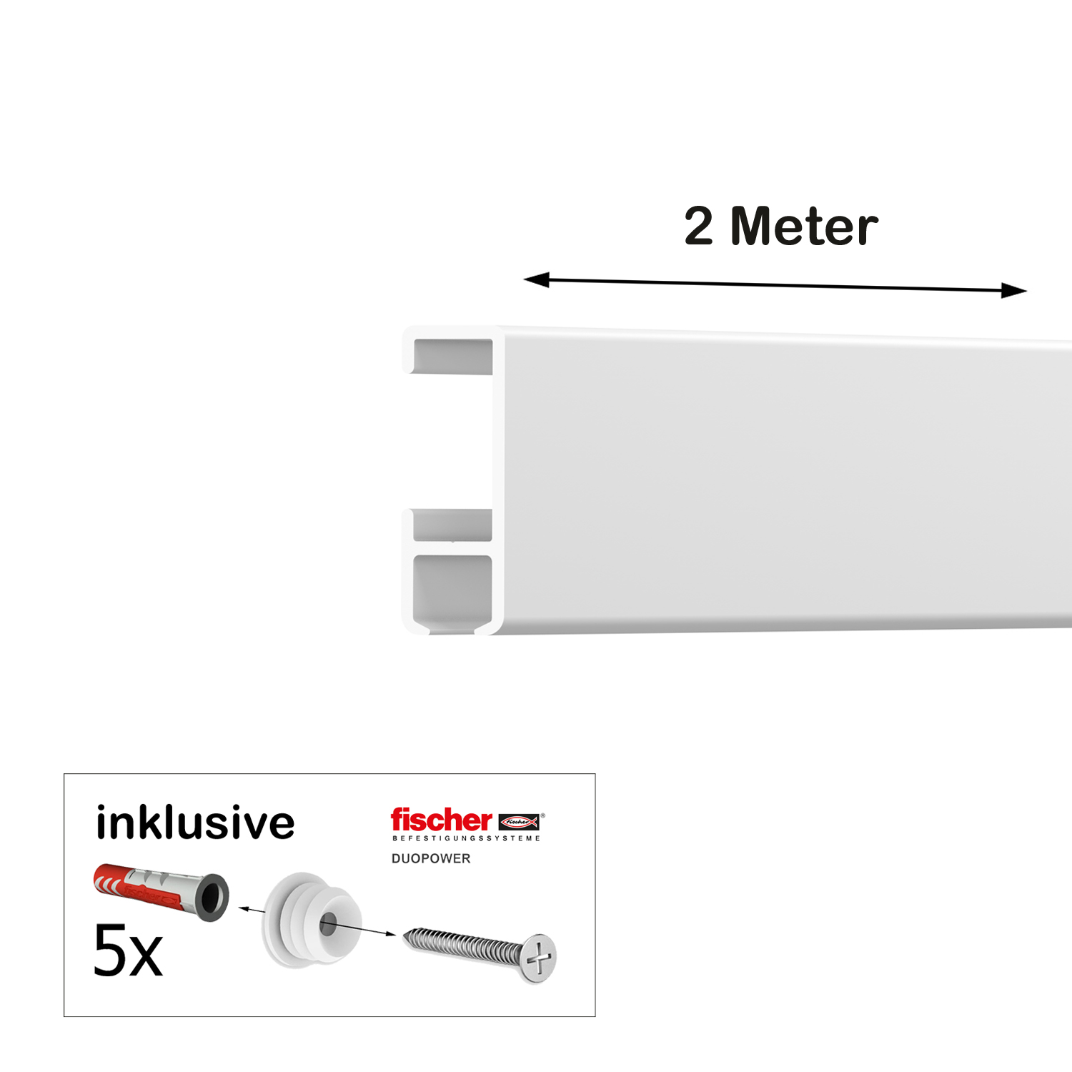 Bilderschiene - Weiß - 2 Meter Stange inkl. Clipse Dübel Schrauben