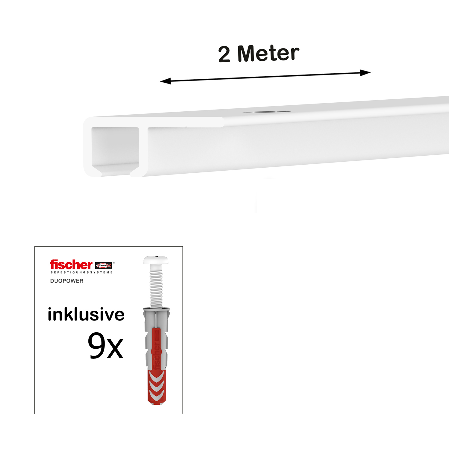 Die Bilderschiene wird mit Montageset (9 weiße Schrauben & Dübel) geliefert!