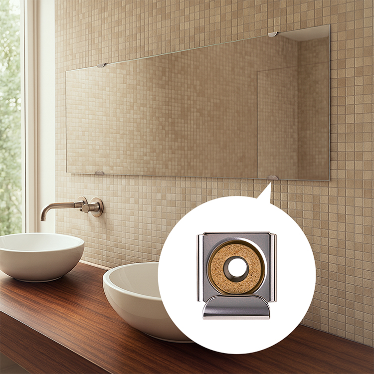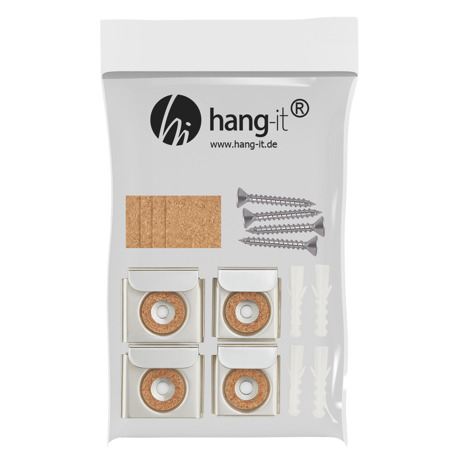 Die beiliegenden Kork-Schutzscheiben schützen Spiegel und Platten vor Kratzern und sorgen für eine materialschonende Auflage. Mit den mitgelieferten Schrauben und Dübeln ist das Set sofort einsatzbereit.